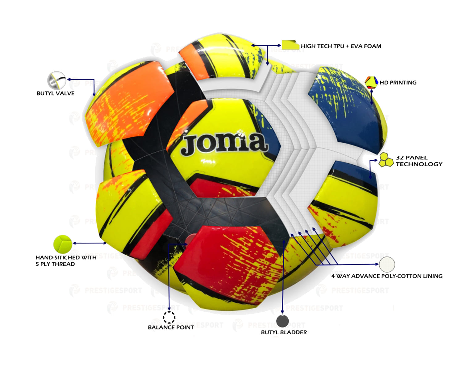 La Dali II Ball è costruita con la classica tecnologia cucita a mano con filo a 5 capi che ci fornisce cuciture di alta qualità e rilegatura forte. Il sistema di rivestimento in policotone a 4 strati aumenta la forza, la potenza e il controllo.